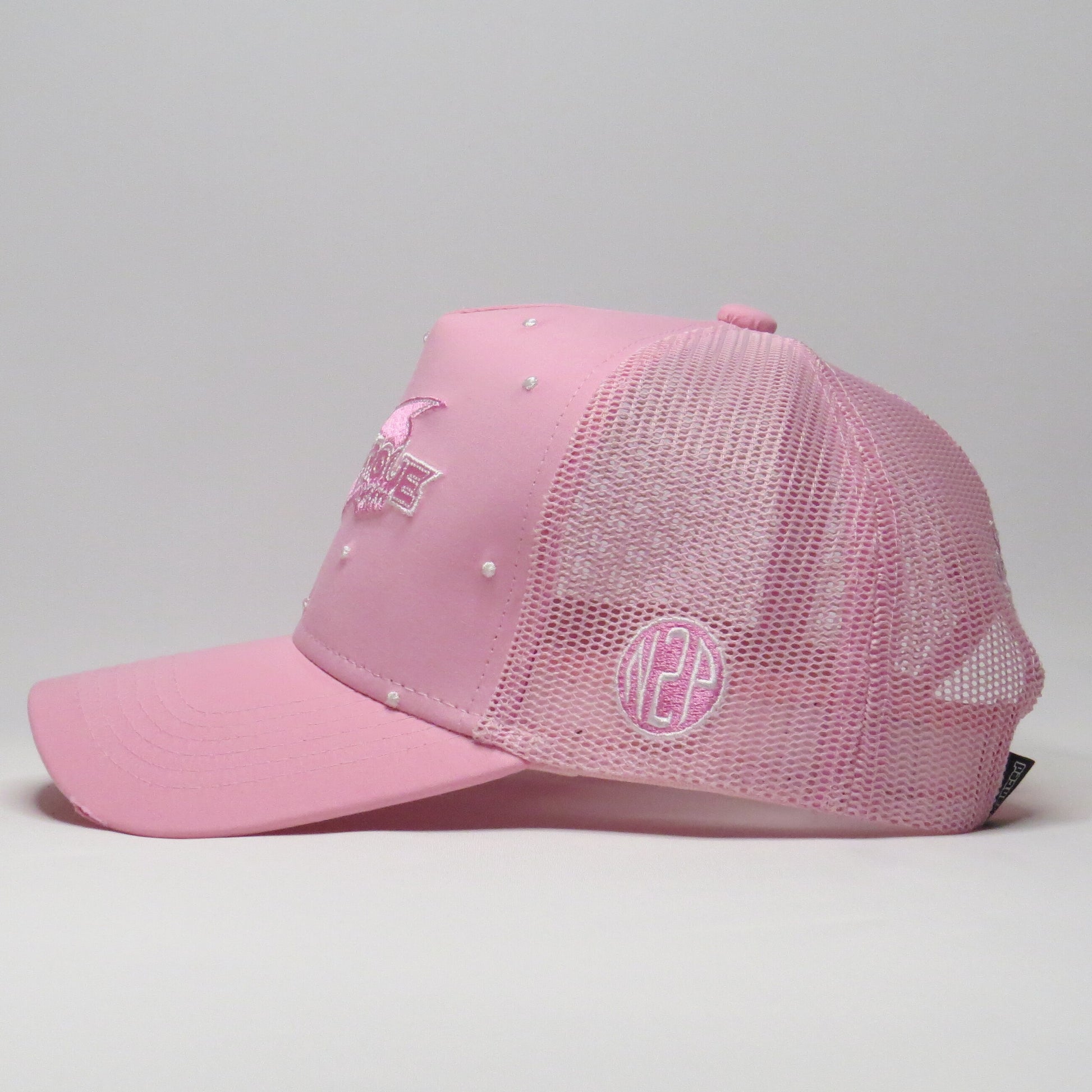 Made from high-quality cotton with a classic trucker hat design, this cap features breathable mesh on the back for comfort and airflow. The adjustable strap is a classic snapback with plastic snaps for a perfect fit.